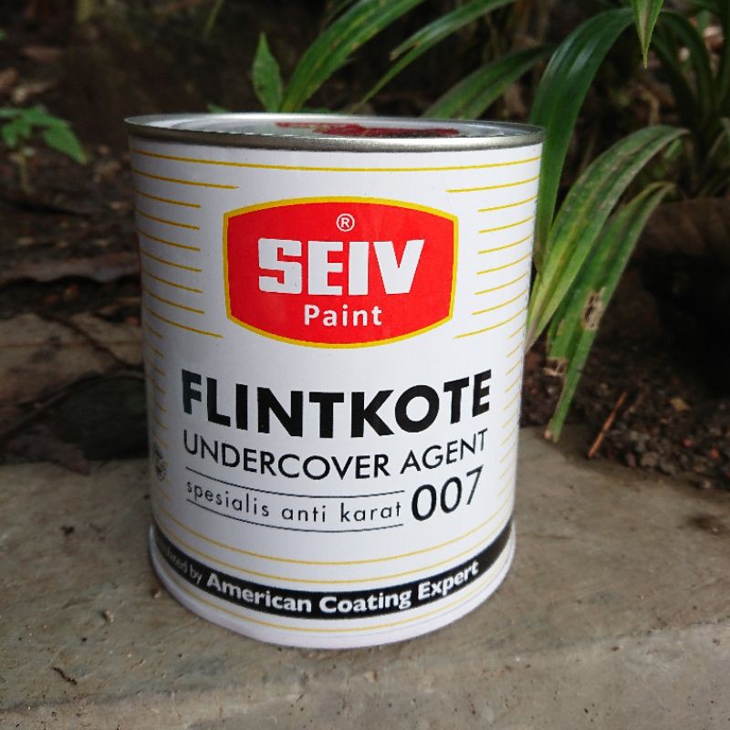 Cat Pelapis Anti Karat Seiv FlintkoteIsi = 1 kgSEIV FLINTKOTE UNDERCOVER AGENT 007 adalah cat anti karat dan anti bocor berbahan dasar bituminous, memiliki karakteristik mampu menahan karat, daya lekat yang baik, cepat kering dan tahan panas hingga 120C. Selain cocok untuk penggunaan eksterior dan interior, SEIV FLINTKOTE UNDERCOVER AGENT 007 dapat diaplikasikan pada baja, metal (mobil, motor), mesin, atap dan b