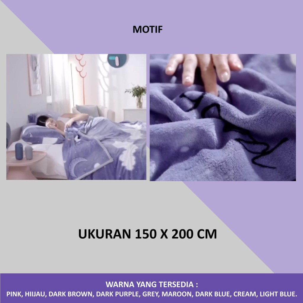 Sebelum klik BELI silakan dibaca dulu yach..SEMUA KETERANGAN ADA DI RINCIAN PRODUK BUKAN DI GAMBAR atau BISA TANYA MELALUI CHAT :)- Stok di etalse toko kami bisa dipastikan 80% ready jadi langsung aja diorder yach..- Semua barang sudah dicek sebelum dikirim dan dipastikan dalam keadaan bagus..!!! - Tidak terima return KECUALI ada PERJANJIAN..!!!- SETUJU silakan ORDER..!!!SELAMAT BERBELANJA :)1. Selimut Bulu sangat halus dan lembut, sehingga enak dan nyaman dipake, hangat dimusim dingin dan tidak panas di musim panas2. Ukuran 150cm x 200cm dengan gramasi 550g, pas untuk satu orang dewasa3. Bulu tidak rontok dan tidak luntur, muda dicuci dan awet dipake4. Motif sangat stylish dan menarik5. Cocok dijadikan Kado Ulang tahun/PernikahanMenggunakan kain Polyester 110 GSM.Keuntungan dari kain Polyester :Bahan polyester memiliki banyak keuntungan: kain berbahan ini sangat sulit untuk noda menempel, dan menyerap kelembaban yang sangat sedikit, sehingga jamur, fungi, bakteri, dll tidak hidup di atasnya. Polyester tahan terhadap panas (dryer dan setrika), dengan suhu leleh 265 derajat Celcius (dalam perbandingan, nilon meleleh pada 175 derajat Celcius). Polyester tidak mudah luntur, tahan terhadap bahan kimia, dan dapat dicuci atau di dry-cleaned.NOTE : JIka Motif yang Dipesan Kosong Maka Akan dikirim Sesuai Stok yang Ada, Mohon Sertakan Cadangan Sebelum pengiriman kami pastikan kondisi produk dalam kondisi baru dan tidak rusak.Segala KERUSAKAN akibat pengiriman, antara lain : kekurangan part, pecah /retak, bracket patah, dan lain sebagainya yang disebabkan handling pengiriman tidak ditanggung penjual. "DENGAN MEMBELI PRODUK INI MAKA PEMBELI SETUJU DENGAN KETENTUAN DAN SYARAT DI