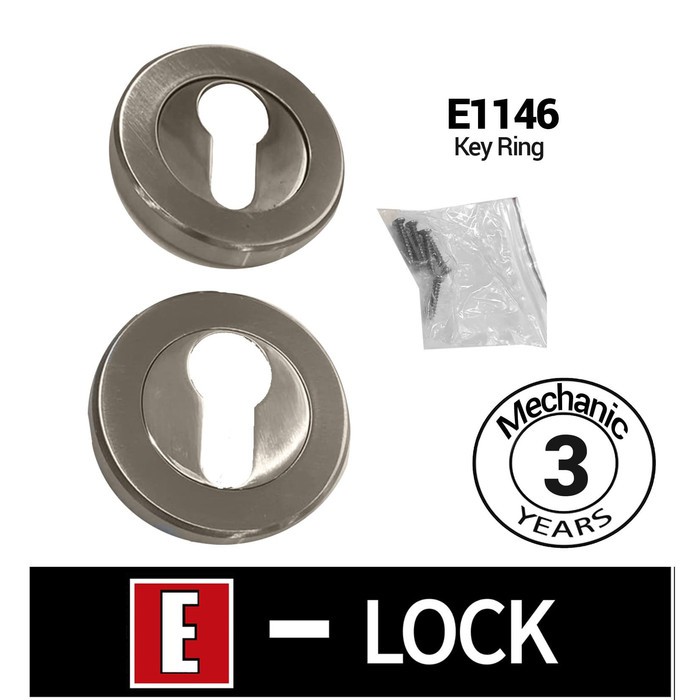 Ring Kunci Elock, Cover Dekorasi Untuk KunciWarna : Satin Stainless Steel + Chrome PlateMaterial : Stainless Steel Kualitas SS304Penutup Slinder / Tutup kunciHarga 1 pasang =2 pcsSudah termasuk skrup dan complete seperti gambarUkuran 54 x
